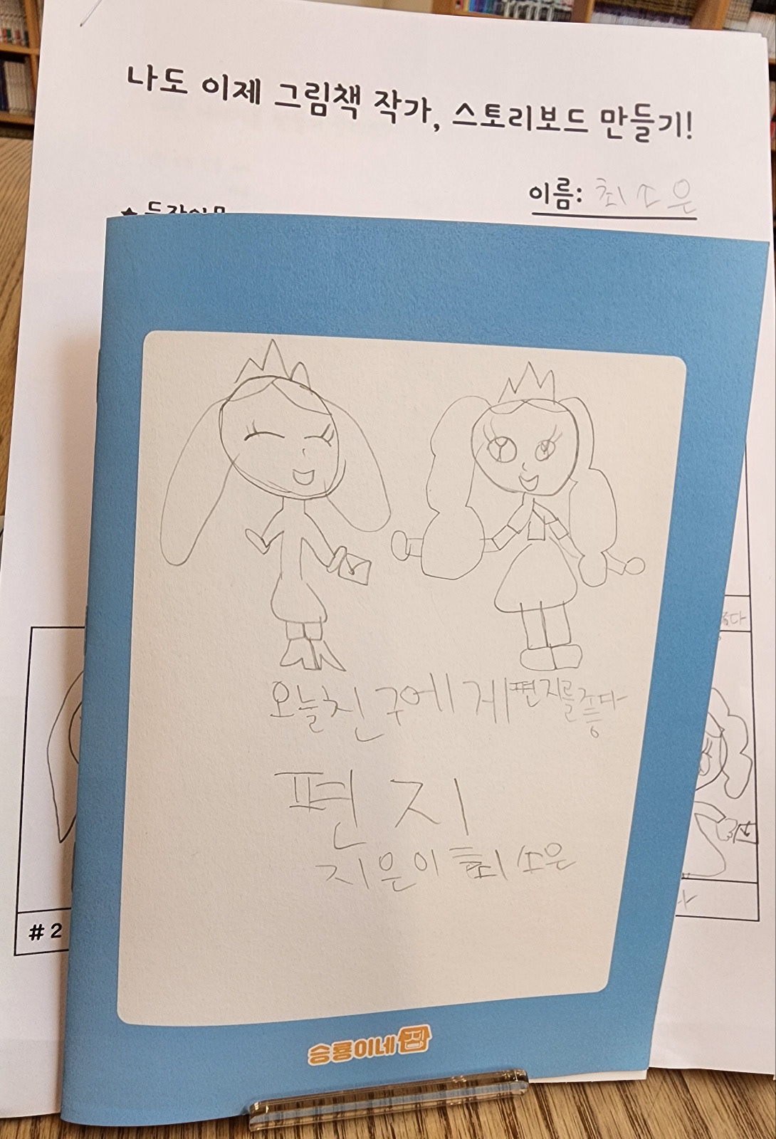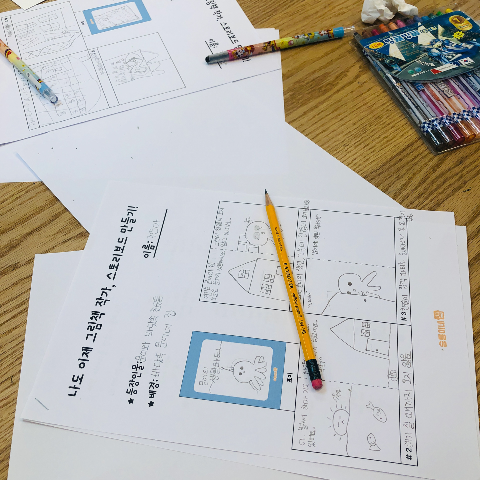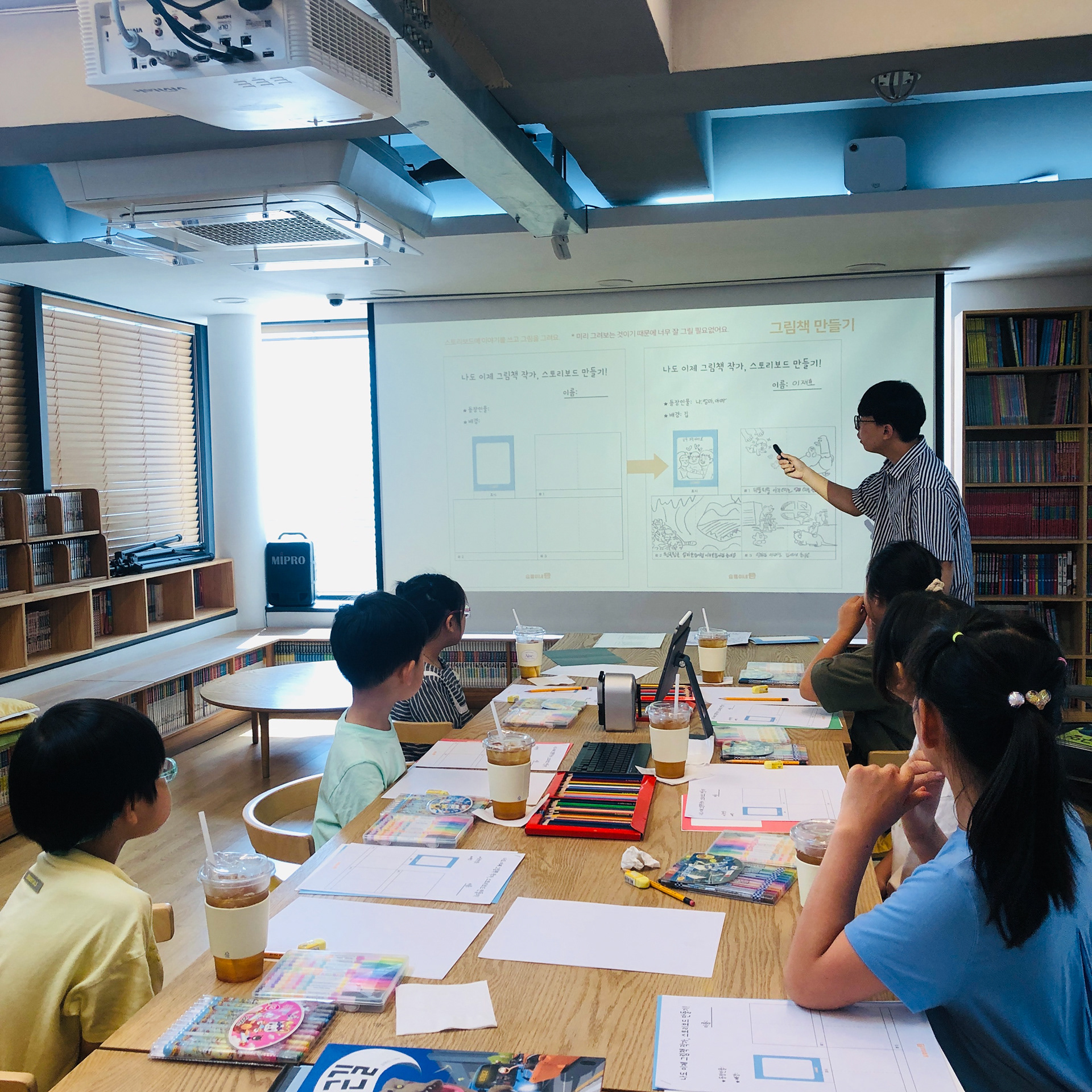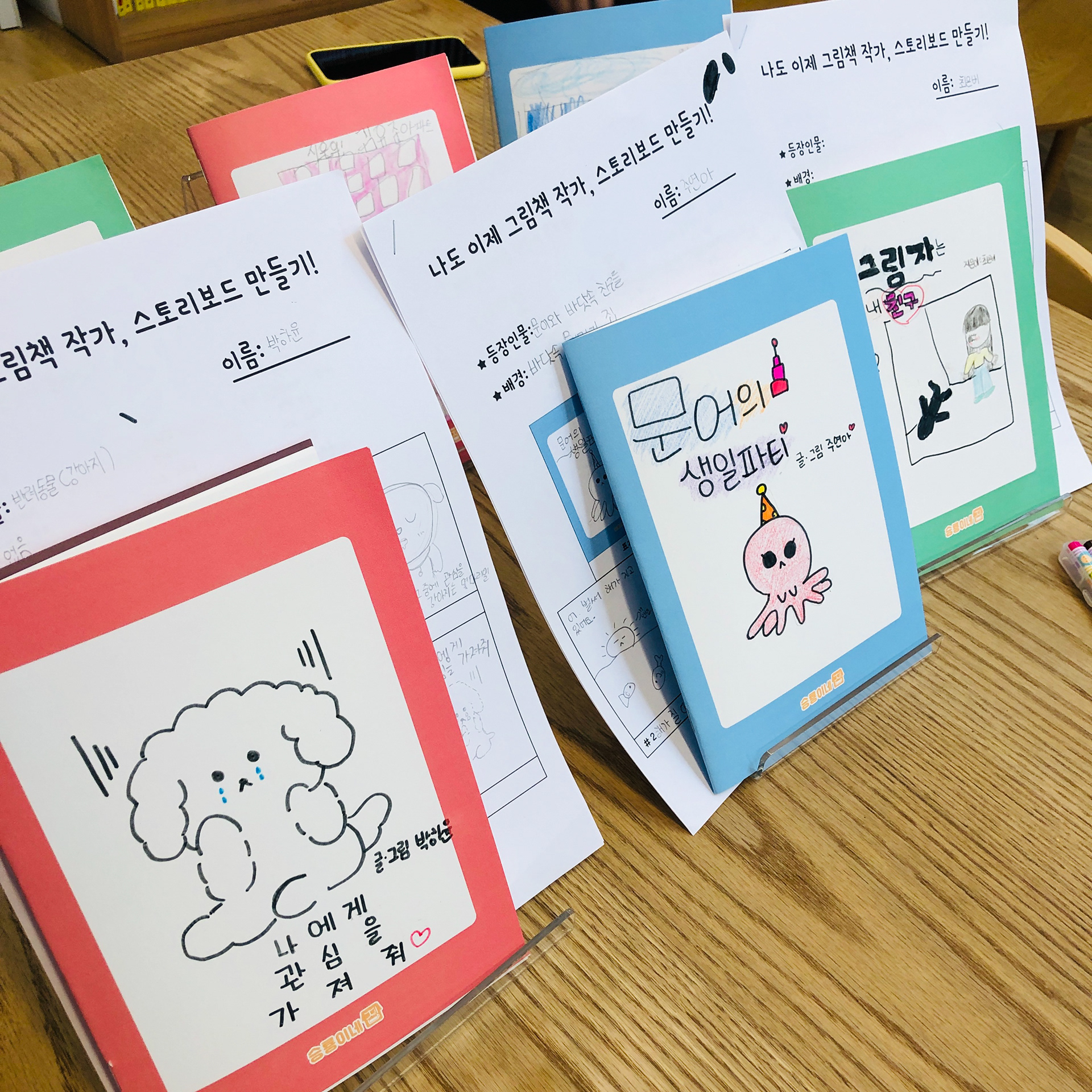 승룡이네집 문화 프로그램. 7세 이상 어린이 대상으로 <그림책 만들기 수업> 진행. 자신의 이야기를 담아 '세상에 하나뿐인 그림책'을 만드는 시간.