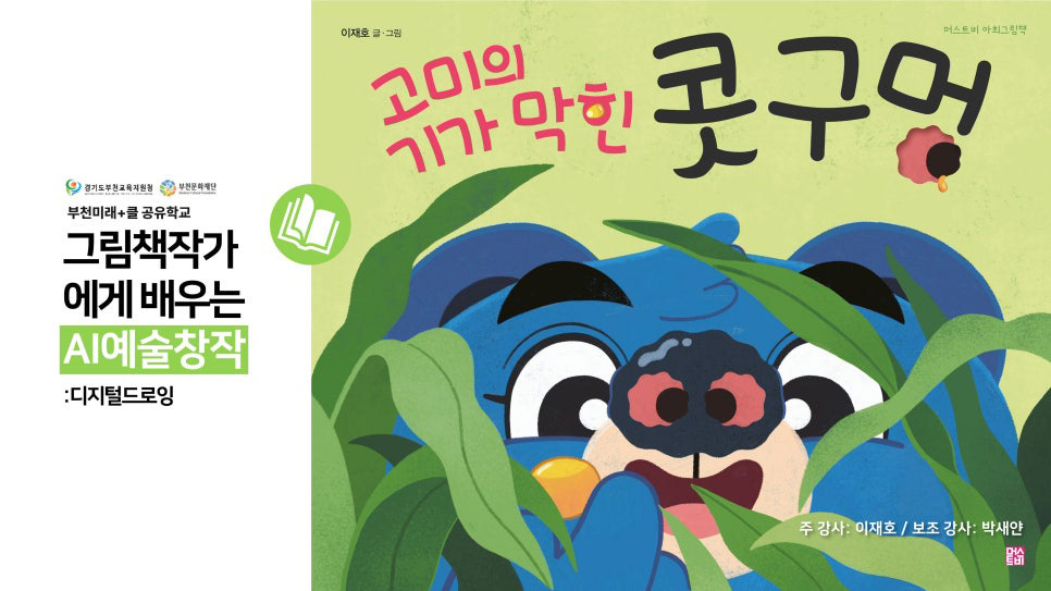 부천 미래+클 공유학교 프로그램(미디어 공유학교)의 일환으로 경기도 부천교육청과 부천문화재단이 함께하는 사업 속에서 ‘미디어 동화책 만들기’ 과정을 직접 기획하고 진행.